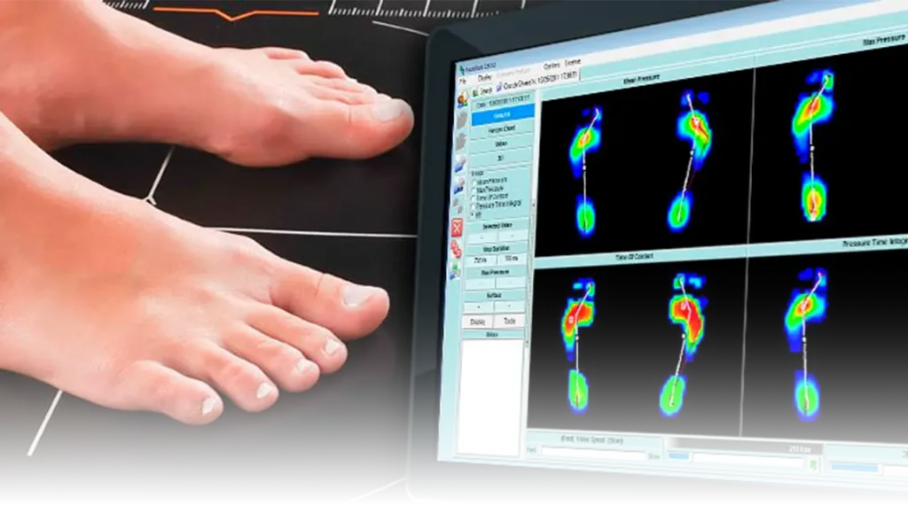 Exame computadorizado que analisa sua pisada e distribuição de peso.